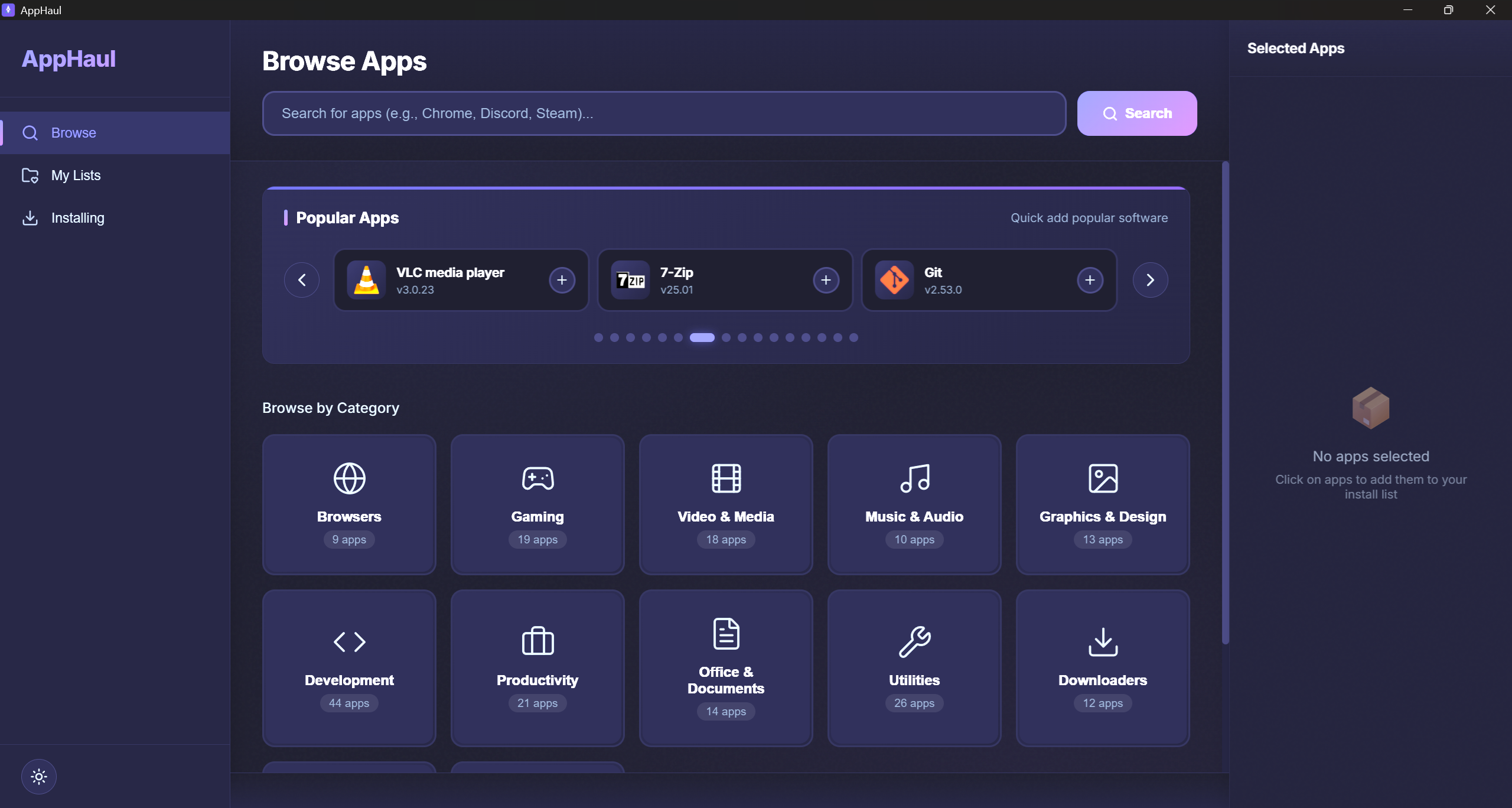 Never lose your application setup again. AppHaul makes it easy to backup your installed apps and restore them on any machine.